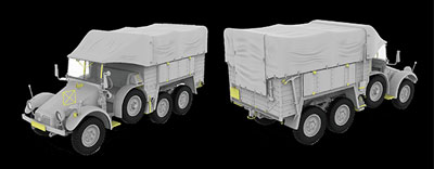 1933年、ヒトラーとナチ党がドイツで政権を握ると、大規模な再軍備計画が始まりました。その計画のもとで最初に製造された軍用トラックのひとつが、Krupp社製のKfz.70 6輪駆動軽トラックで、L2 H43と呼ばれ、兵士たちには「クルップ・プロッツェ」の名で知られていました。当初は砲兵牽引車および汎用トラックとして設計されましたが、後に電話通信車、司令車、通信車、弾薬運搬車など、さまざまな派生型が登場しました。